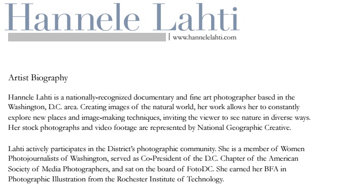 If you must provide an artist biography in 50 words or less then focus on the key information and remove the filler words that we tend to use when describing ourselves and our achievements. Describe yourself in 50 words or less.. This is much harder to do than you may think.