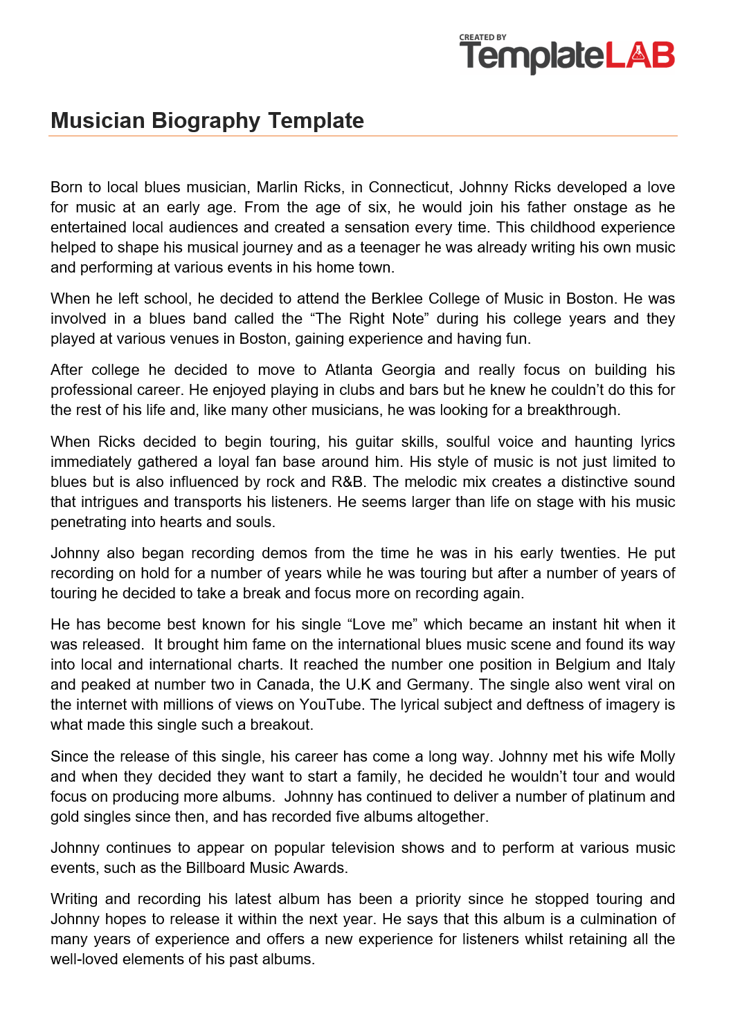 Biography templates guide you in knowing what to leave in and what to leave out of the biography... Analysts, executives, and industry proprietors necessitate them for a variety of monetary analysis and business choice making situations. Biography templates guide you in knowing what to leave in and what to leave out of the biography. 02.12.2020 · how to make a medium length artist bio. Biography templates guide you in knowing what to leave in and what to leave out of the biography.